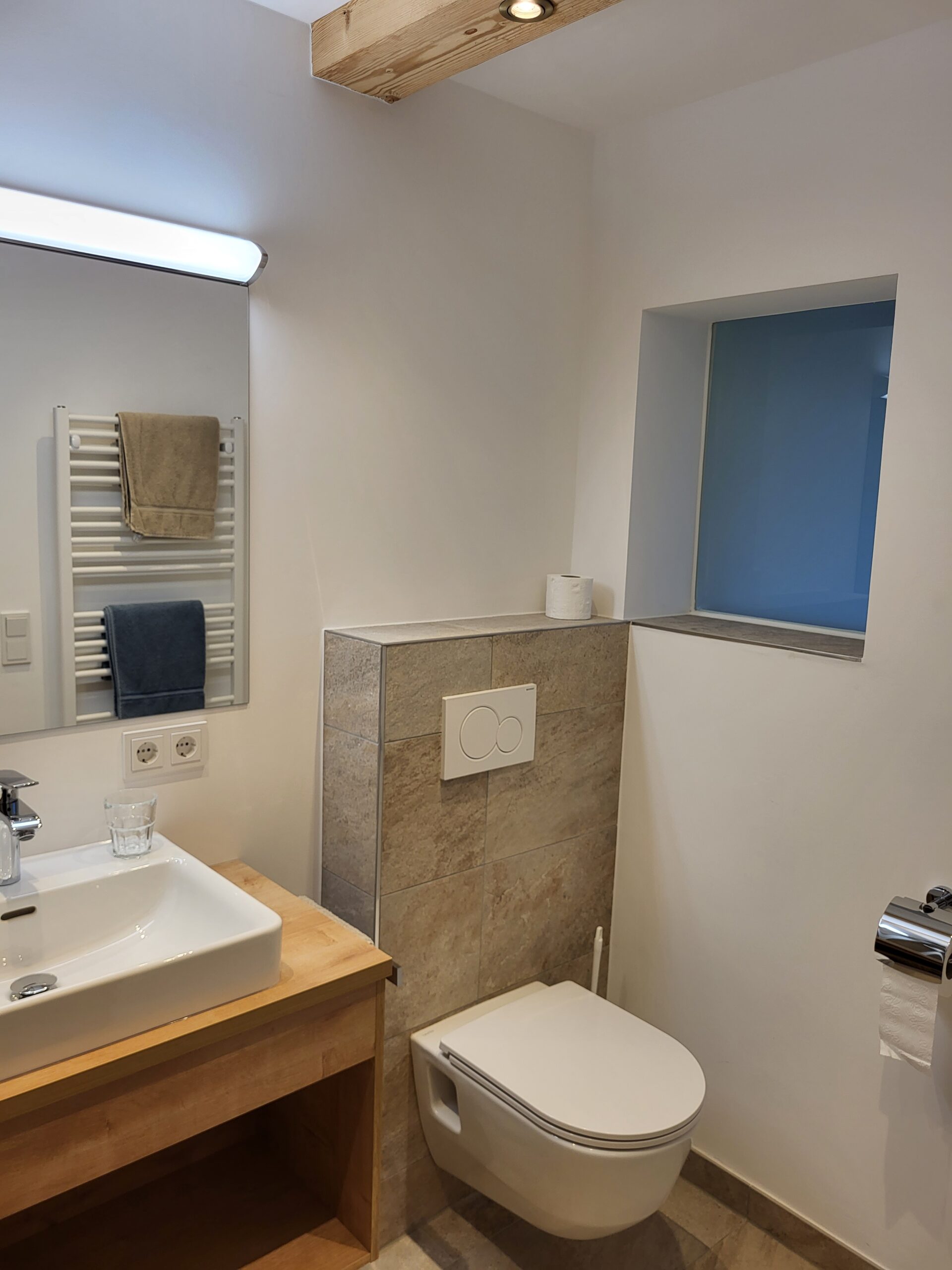 Our bathrooms have been renovated in Spring 2023. We made everything new. The consist out of a huge shower, a toilet, a sink, a towel dryer including free towels. - Lounge